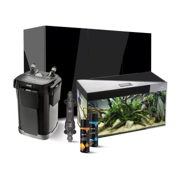 Nowoczesny i elegancki zestaw akwariowy stworzony z myślą o pasjonatach. Zbiornik ze szkła typu opti o podwyższonej przejrzystości, podwieszana lampa i dopasowana szafka tworzą niebanalną całość.