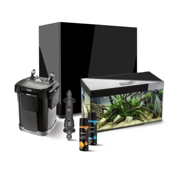 Skład zestawu: Akwarium 260 litrów 120 x 40 x 63 cm wraz z panelem świetlnym LED, szafka 120 x 40 x 72 cm, filtr zewnętrzny Hypermax link z wbudowaną grzałką oraz preparaty niezbędne do uruchomienia Twojego wymarzonego akwarium i czyścik magnetyczny 2w1.